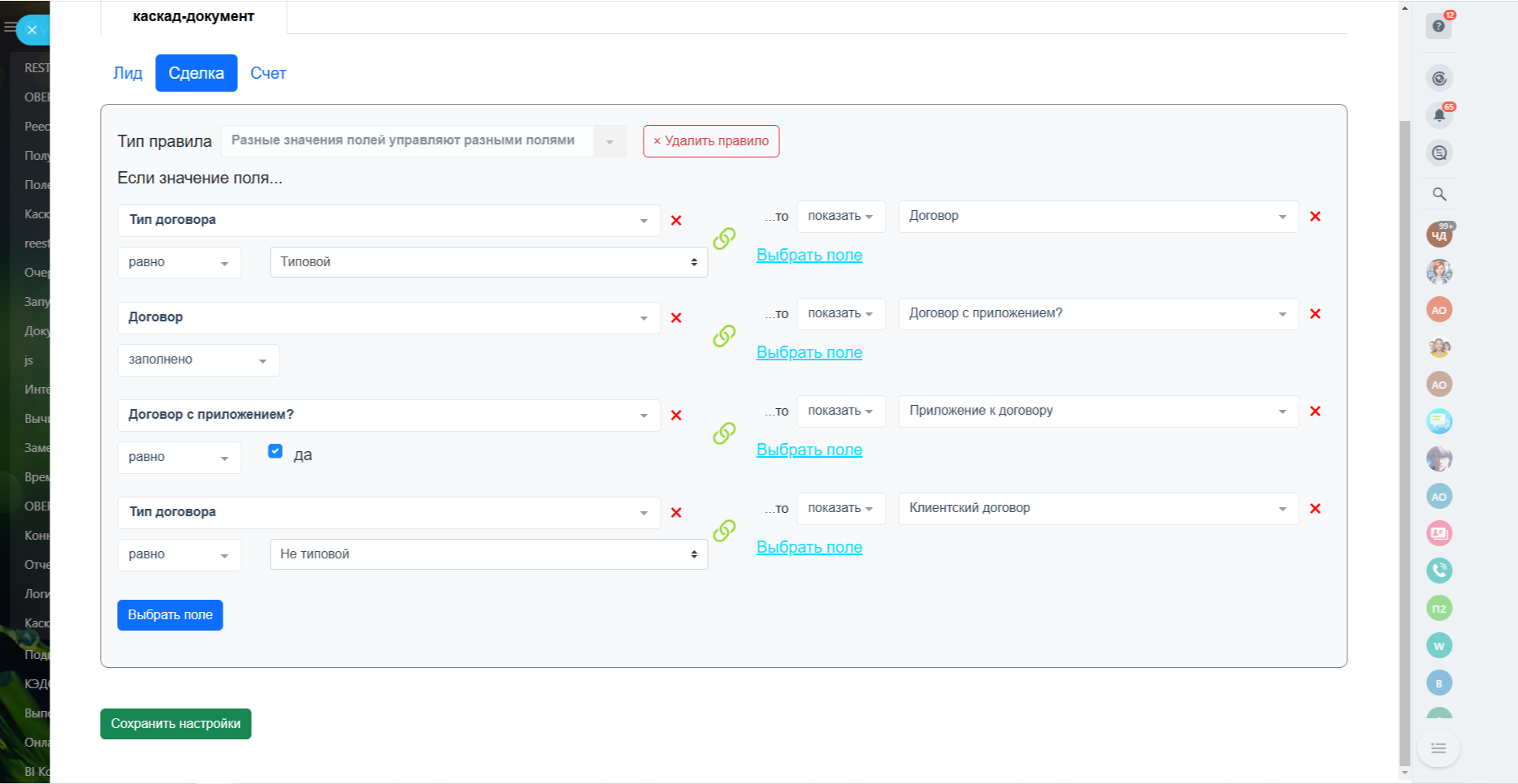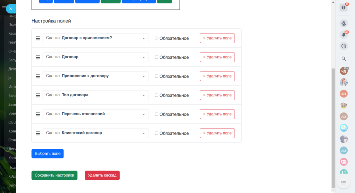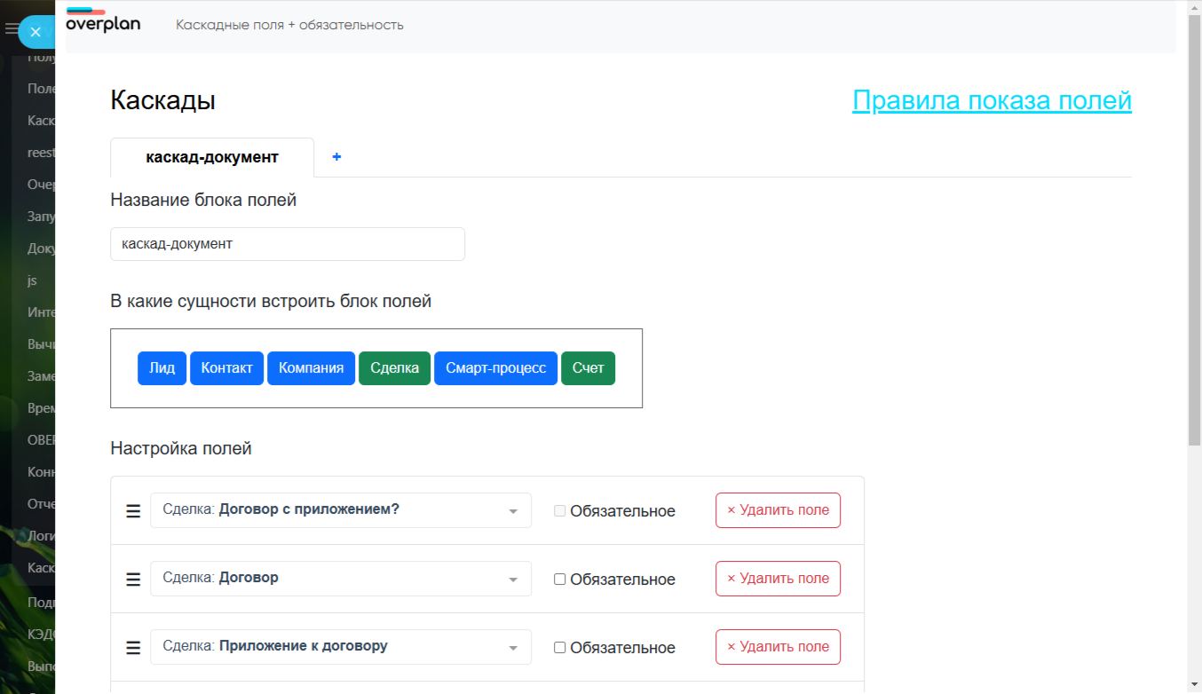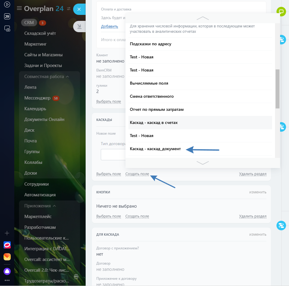Каскады24: Зависимые поля в карточках CRM