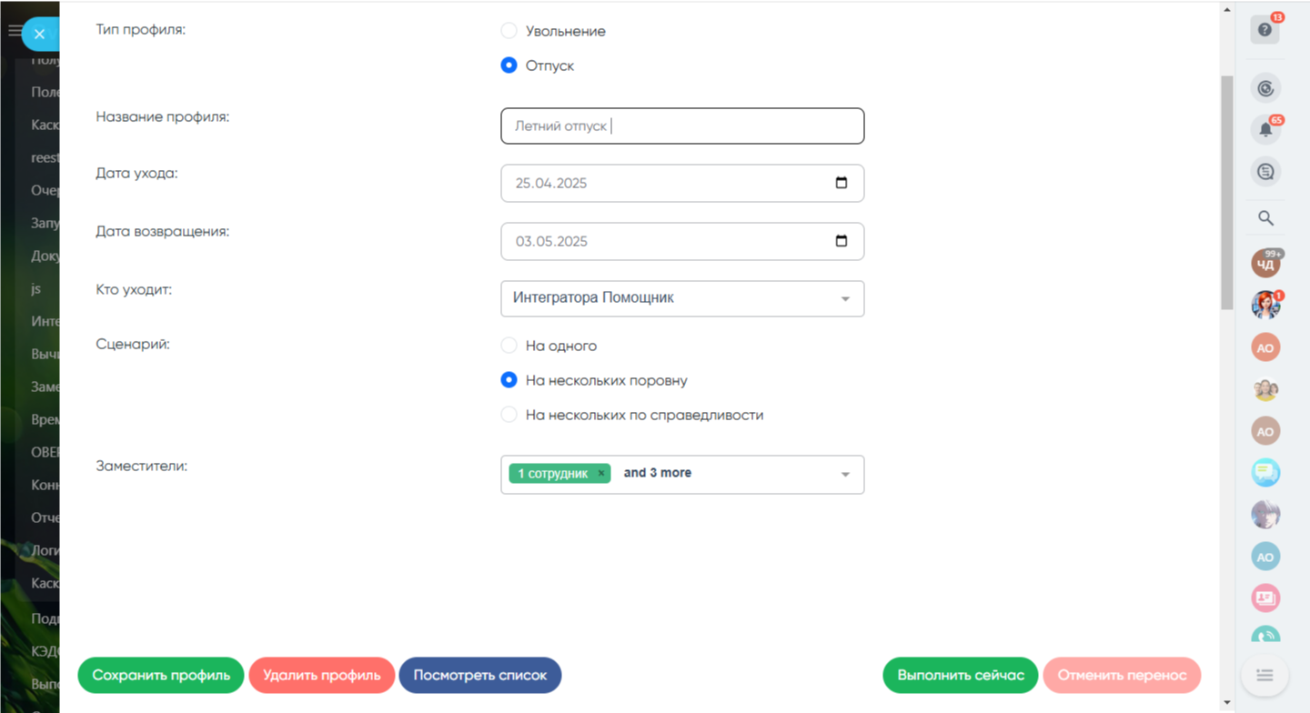 На время отпуска профиль будет недоступен для редактирования, но есть возможность отменить перенос.
