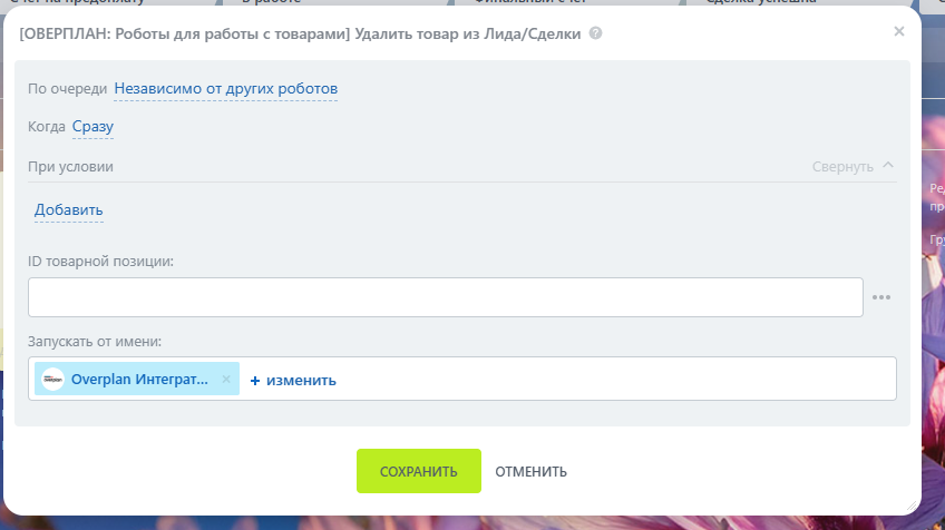 7. Робот “Удалить товар из Лида/Сделки”.