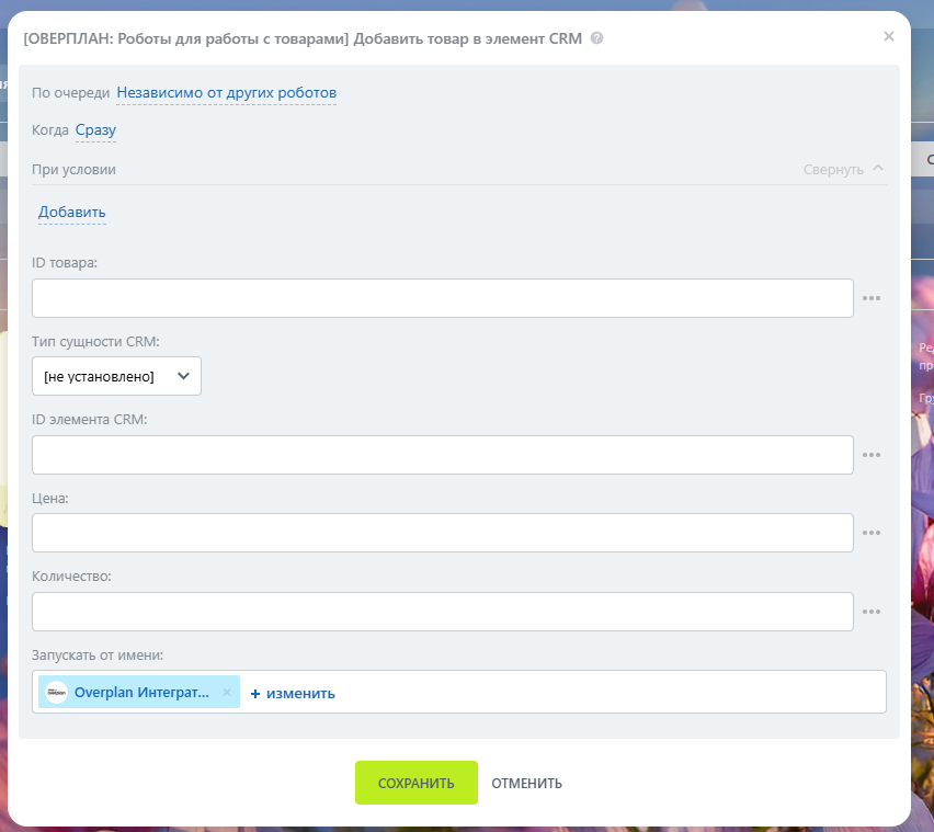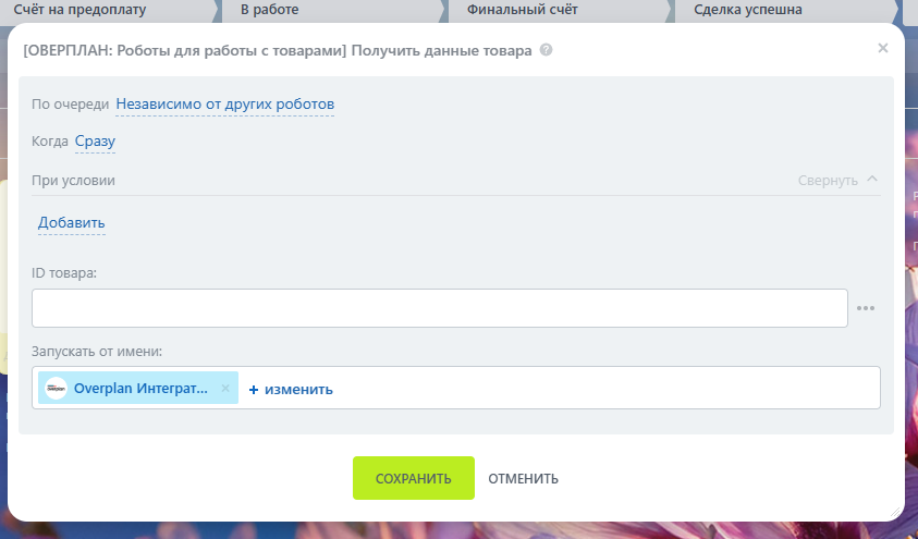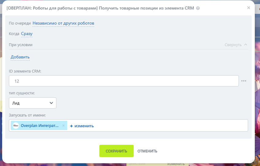 6. Робот “Добавить товар в элемент CRM”.