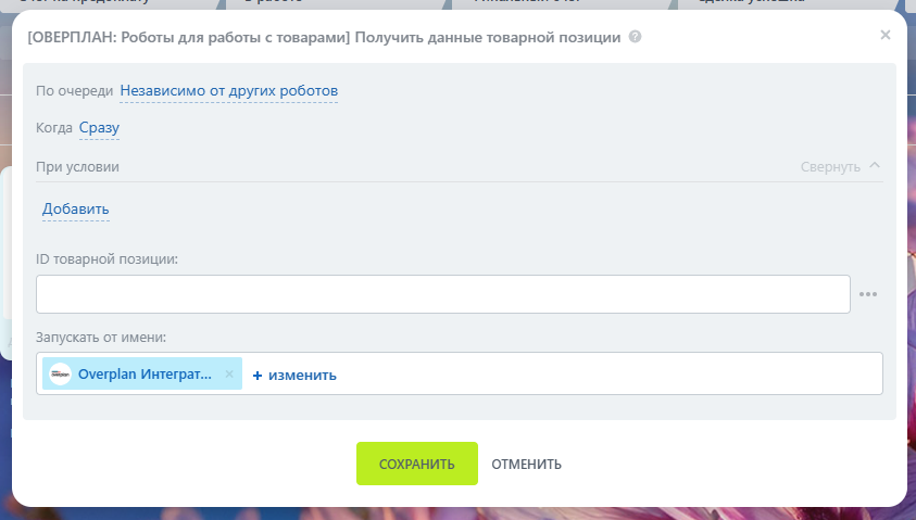 4. Следующий робот “Получить данные товарной позиции”.