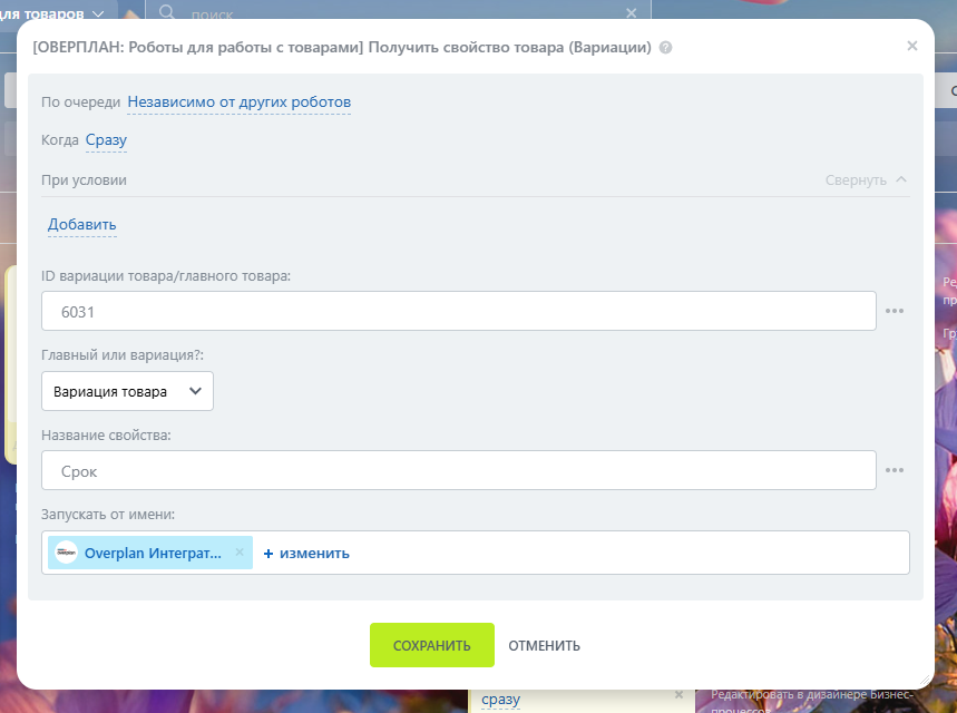 11. Робот “Получить свойство товара (Вариации)”.