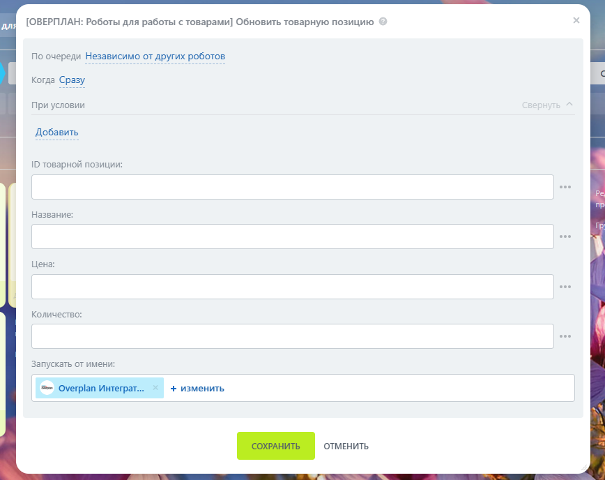 5. Следующий робот “Обновить товарную позицию”.