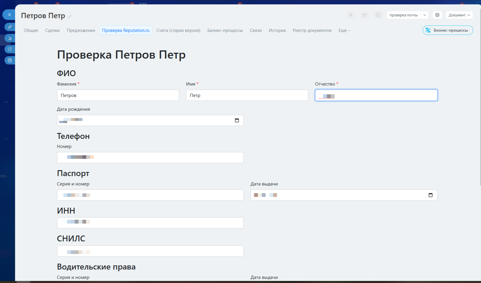 3. В полях для получения более подробного отчета необходимо заполнить максимум известных данных.
